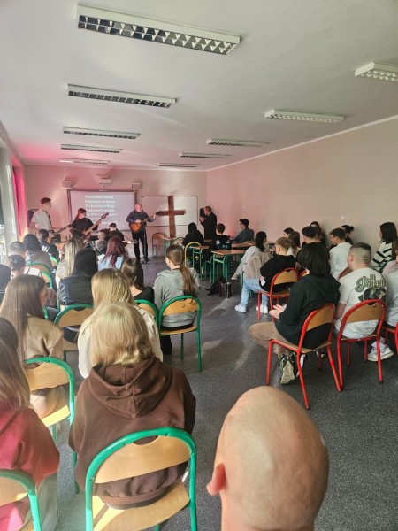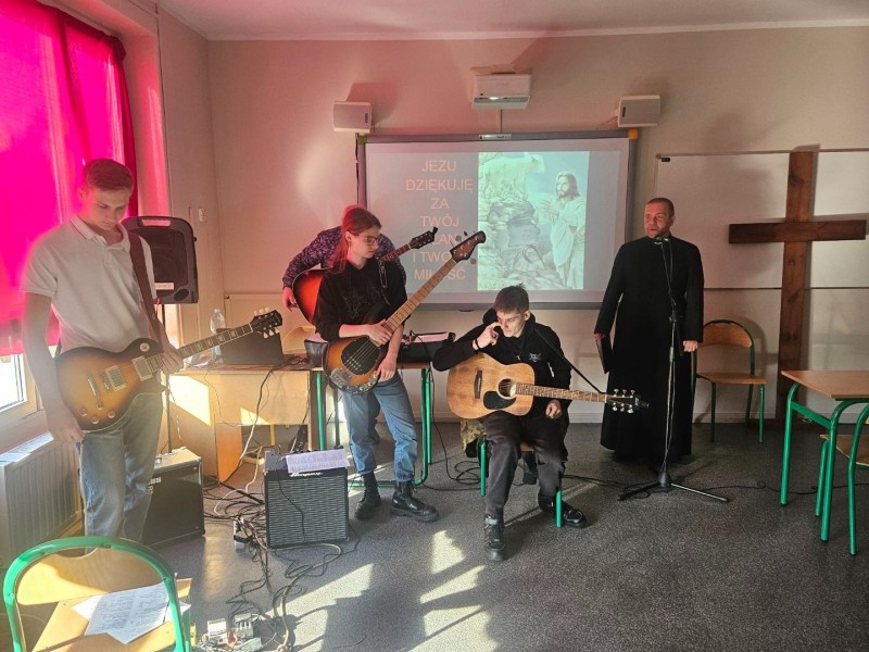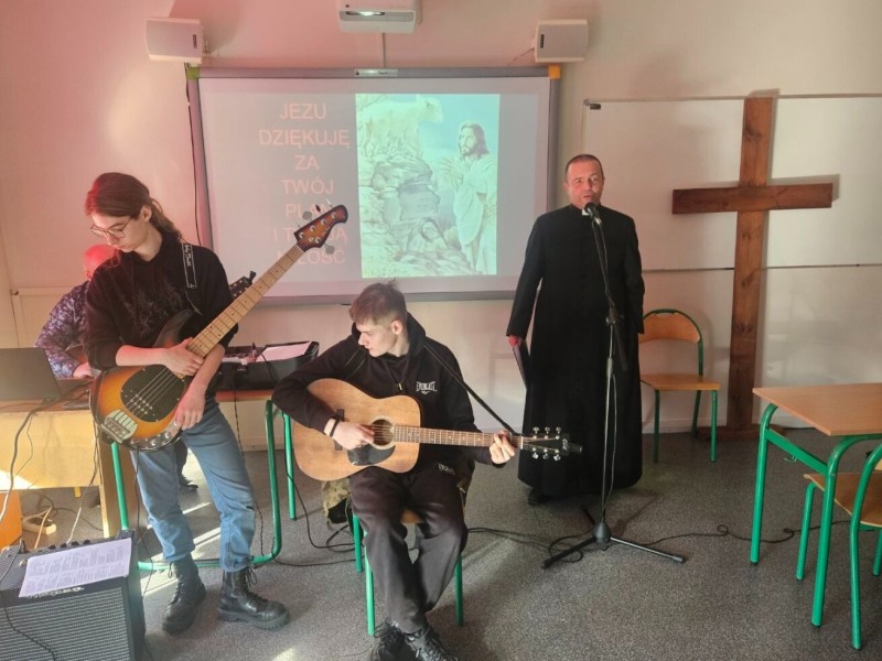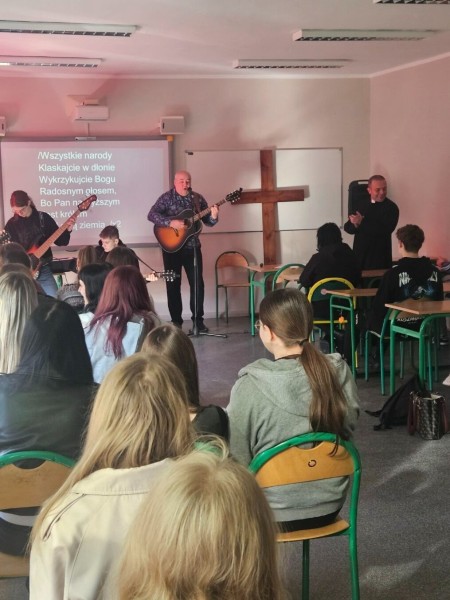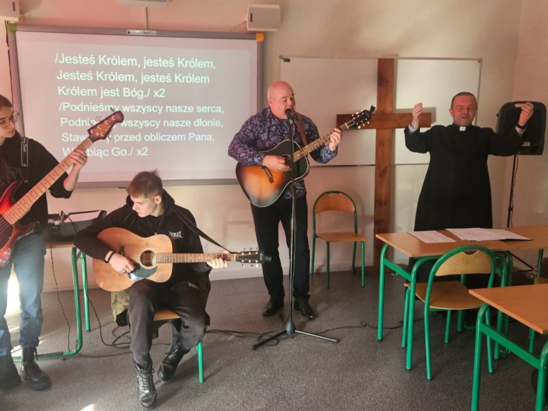 Przekaz wszystkich treści okraszony był sporą dawką chrześcijańskiej muzyki oraz multimediów. Duże słowa podziękowania należą się w tym miejscu gitarzystom: Adamowi Olszewskiemu, Szymonowi Wawrockiemu i Mikołajowi Kopczyńskiemu, którzy wspierając prowadzących rekolekcje- Księdza Artura Kazeckiego oraz Dyrektora Bogdana Magdziarza, prowadzili pozostałych uczestników do uwielbienia Pana Boga. Dziękujemy wszystkim, którzy w jakikolwiek sposób zaangażowali się w owocne przeżycie tego wyjątkowego czasu.